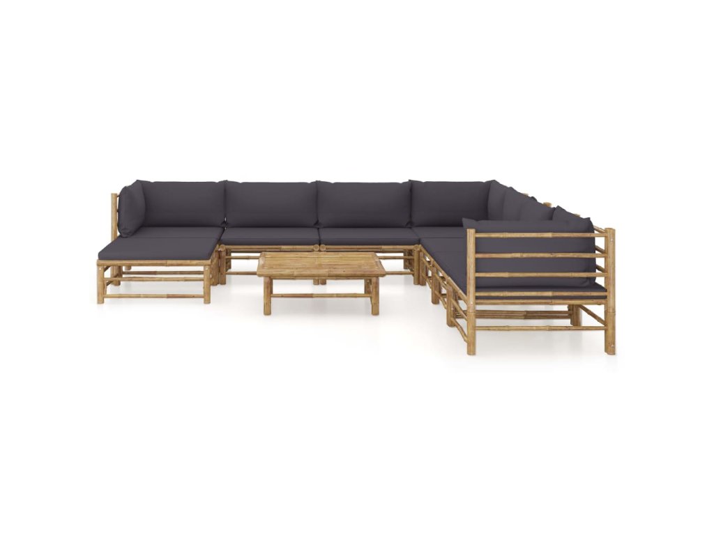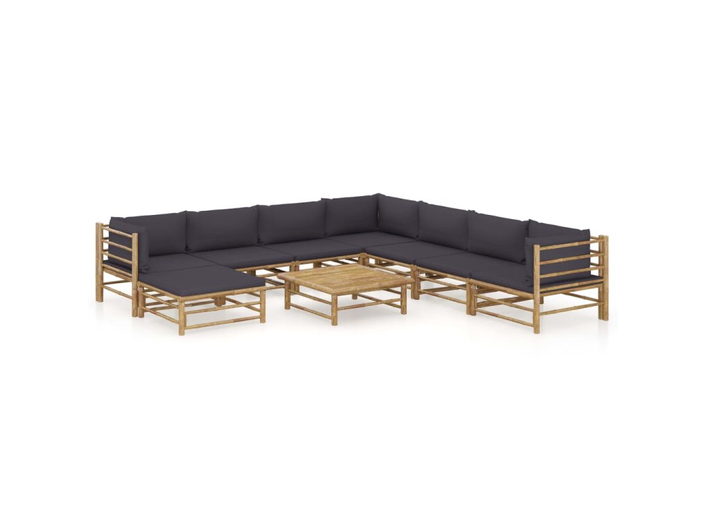 9dílná zahradní sedací souprava + tmavě šedé podušky bambus 3058230