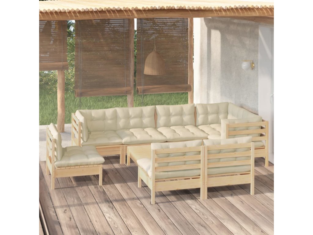 9dílná zahradní souprava krémové podušky masivní borovice 3096472