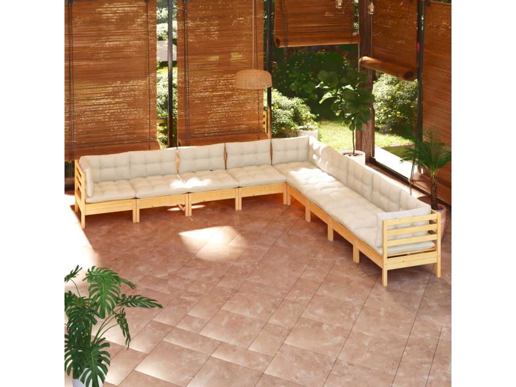 9dílná zahradní souprava krémové podušky masivní borovice 3096815