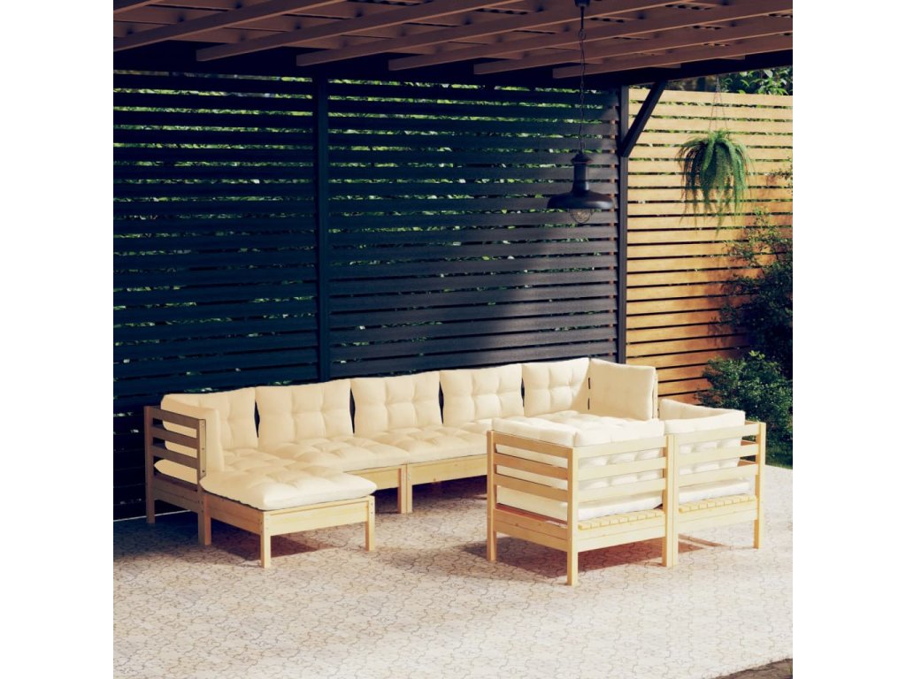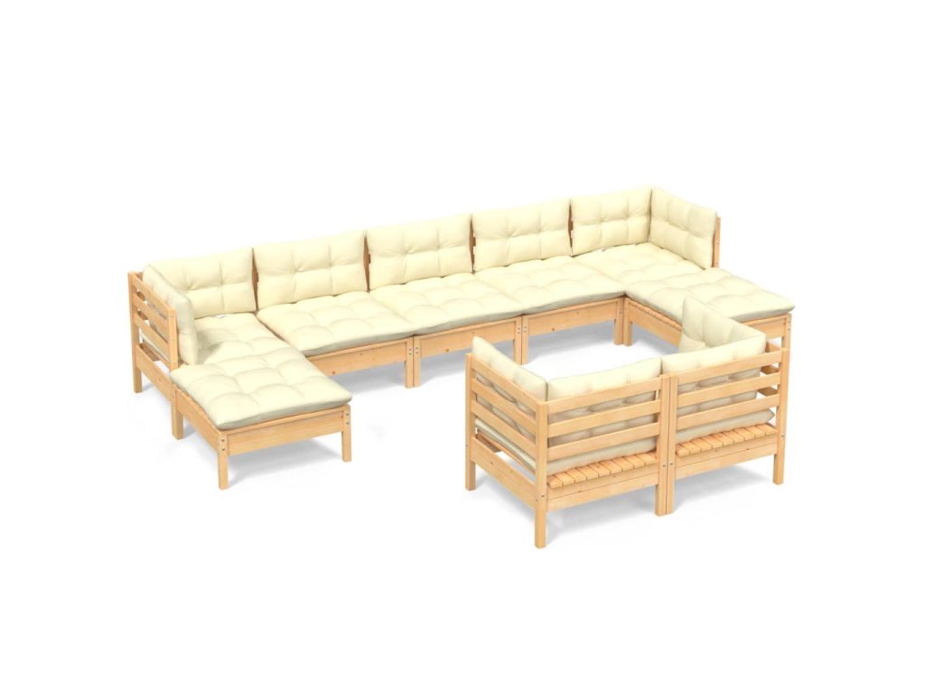 9dílná zahradní souprava krémové podušky masivní borovice 3097127