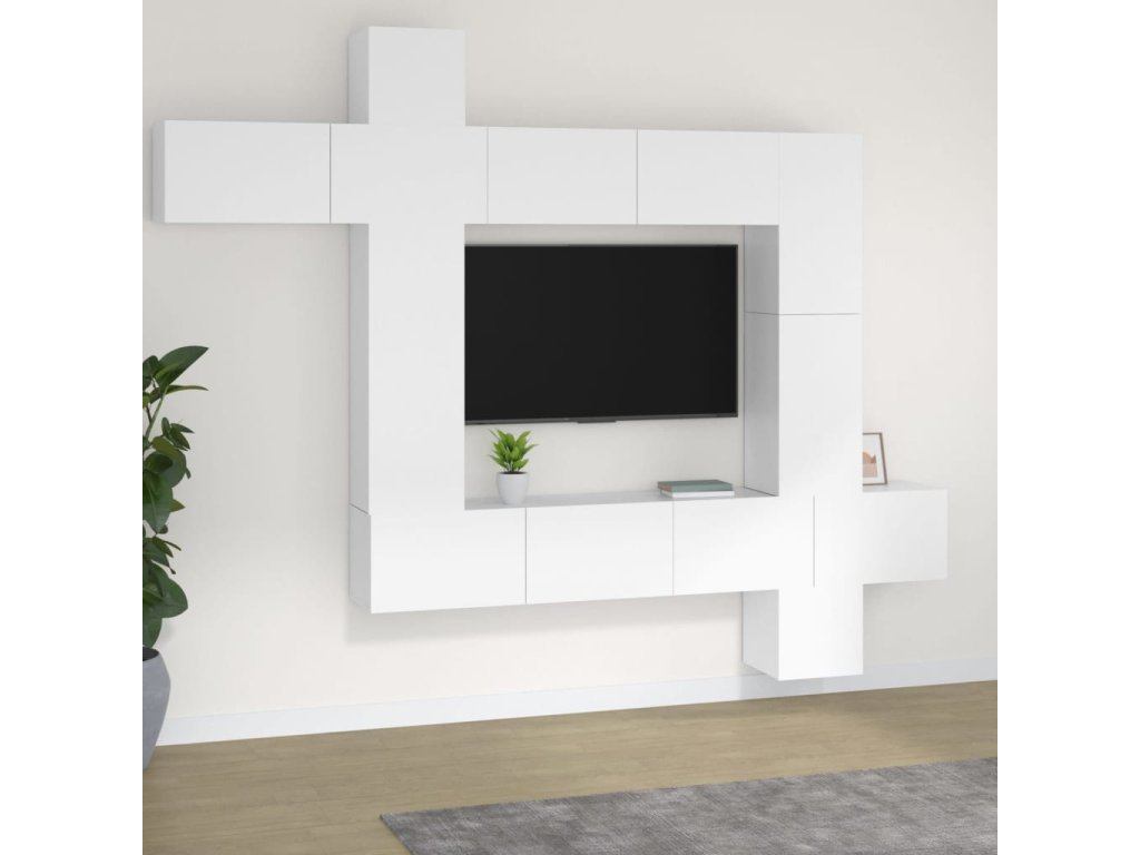 9dílný set TV skříněk bílý kompozitní dřevo 3114654