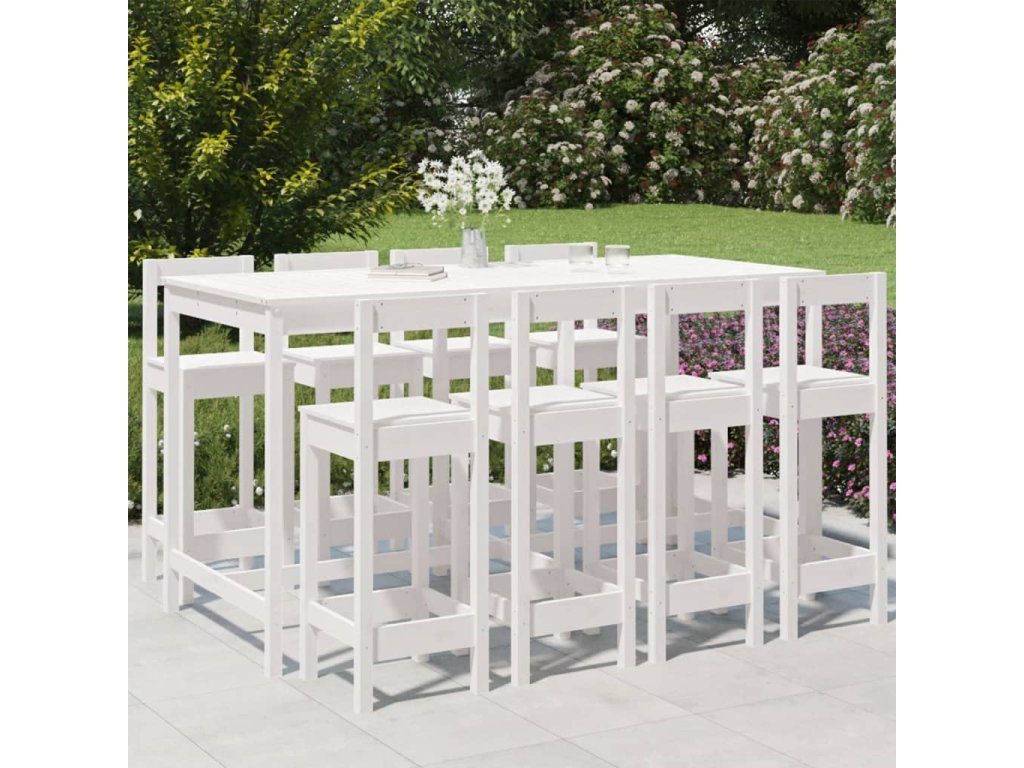 9dílný zahradní barový set bílý masivní borové dřevo 3154771