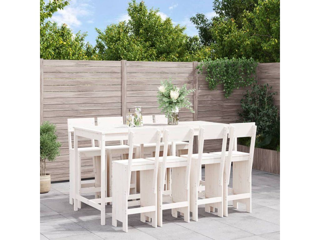 9dílný zahradní barový set bílý masivní borové dřevo 3157818