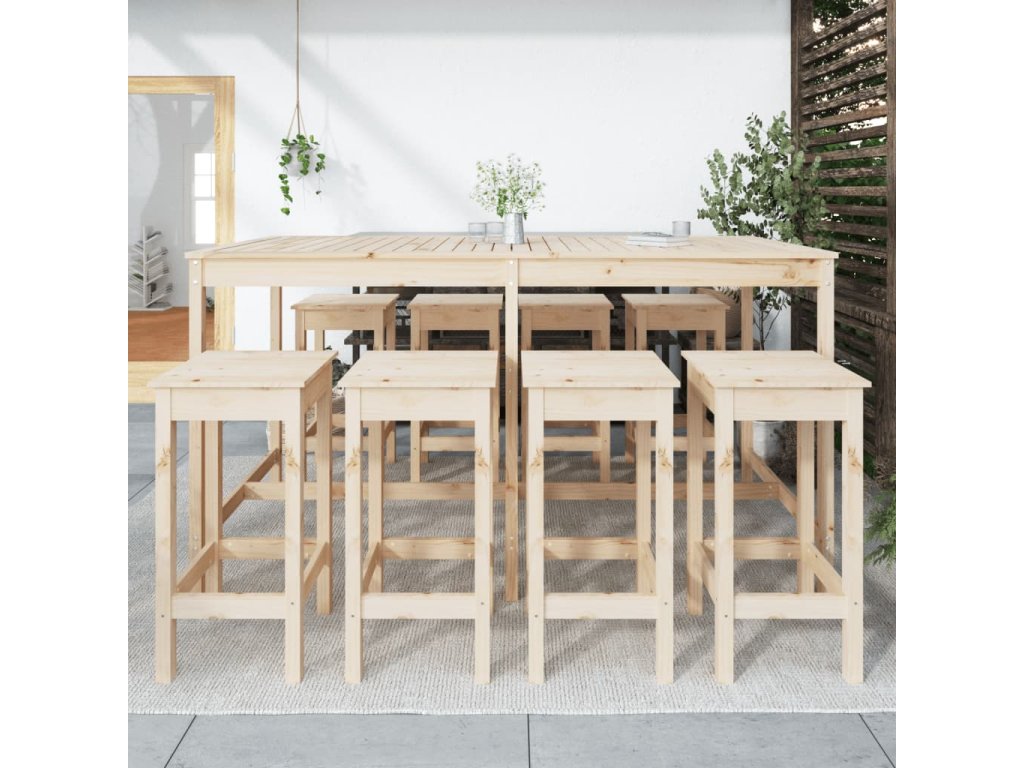 9dílný zahradní barový set masivní borové dřevo 3154765
