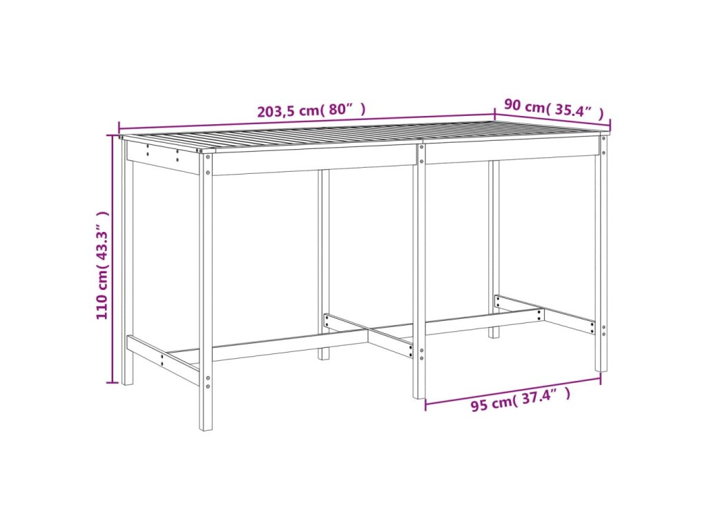 - Rozměry zahradního stolku: 203,5 x 90 x 110 cm (D x Š x V)