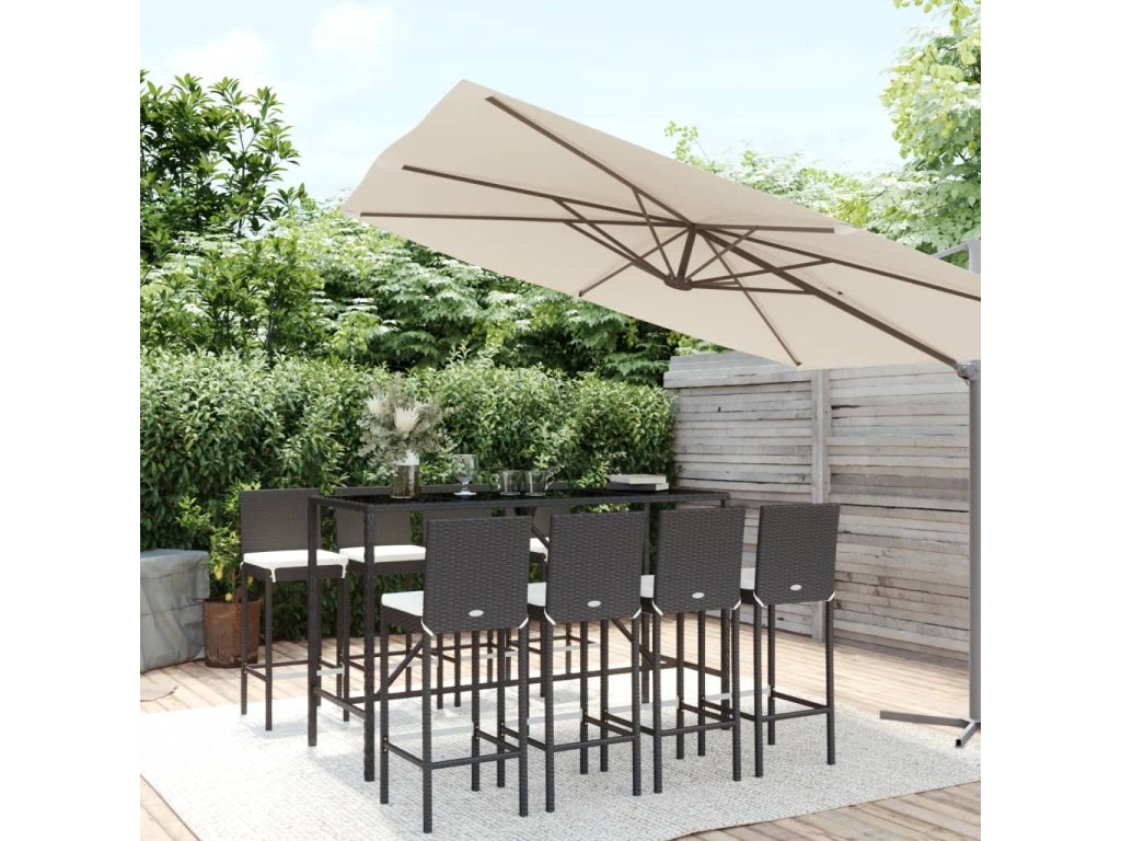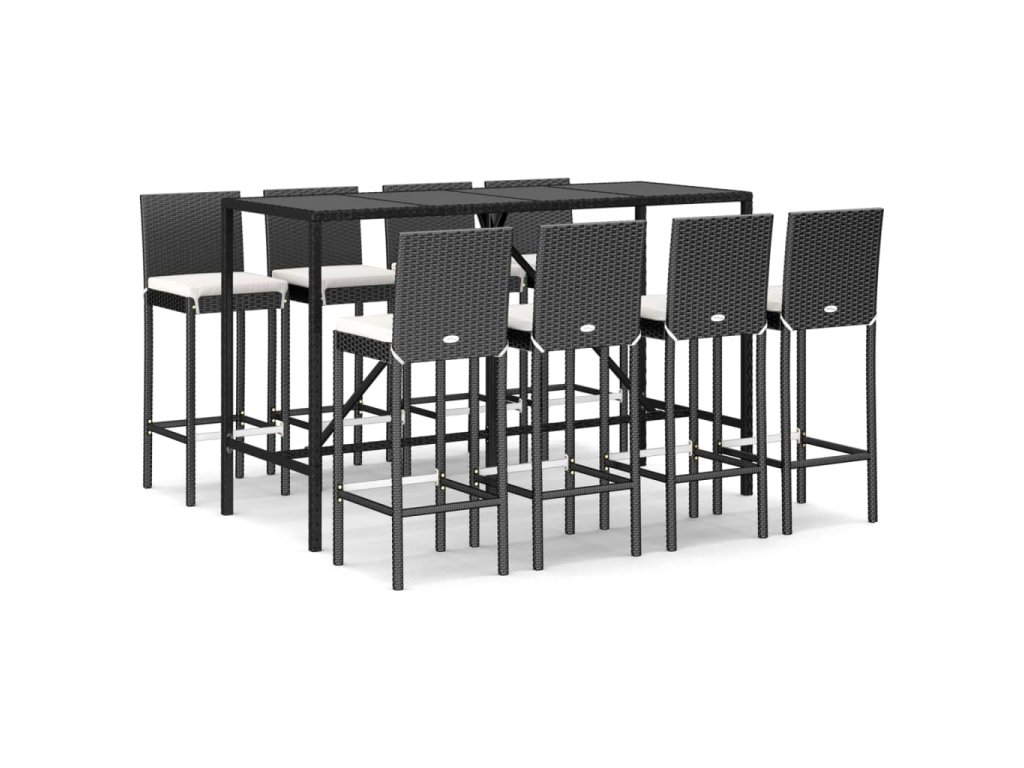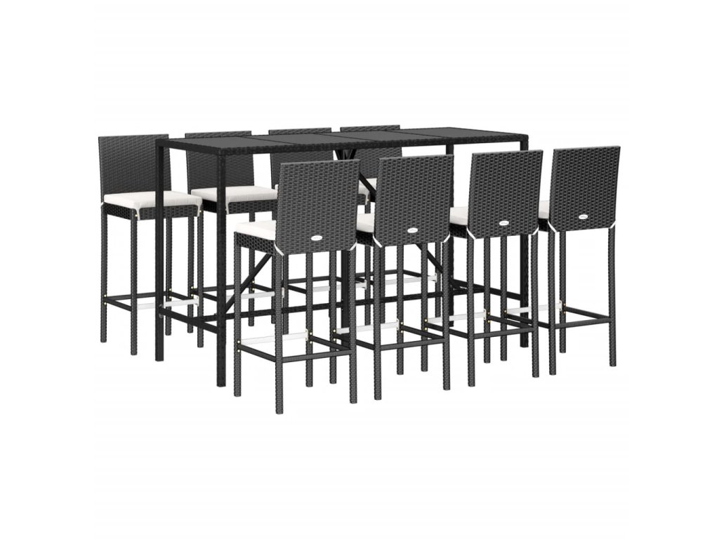 9dílný zahradní barový set s poduškami černý polyratan 3187647