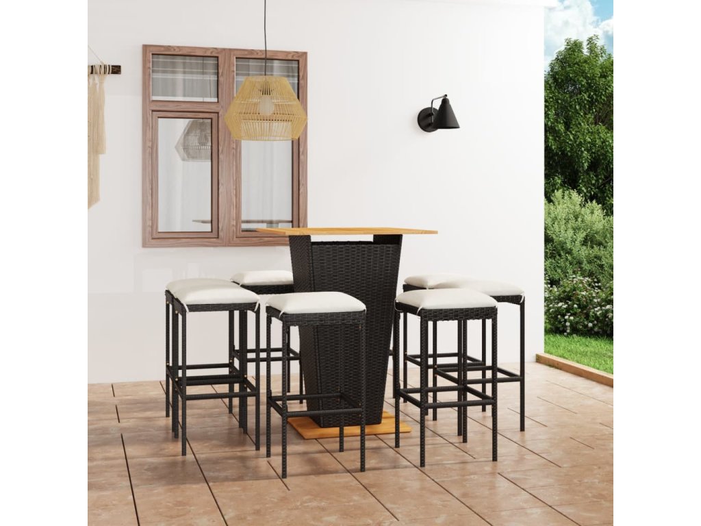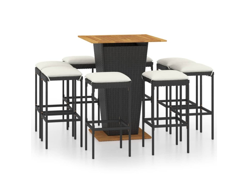 9dílný zahradní barový set s poduškami polyratan černý 3064854