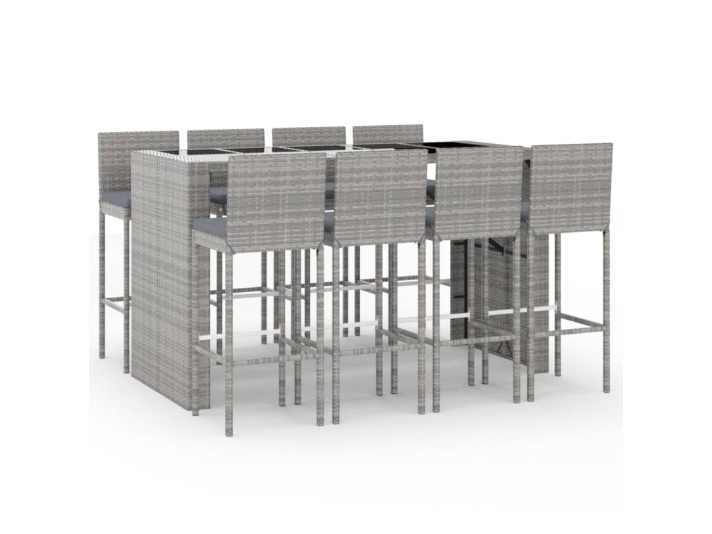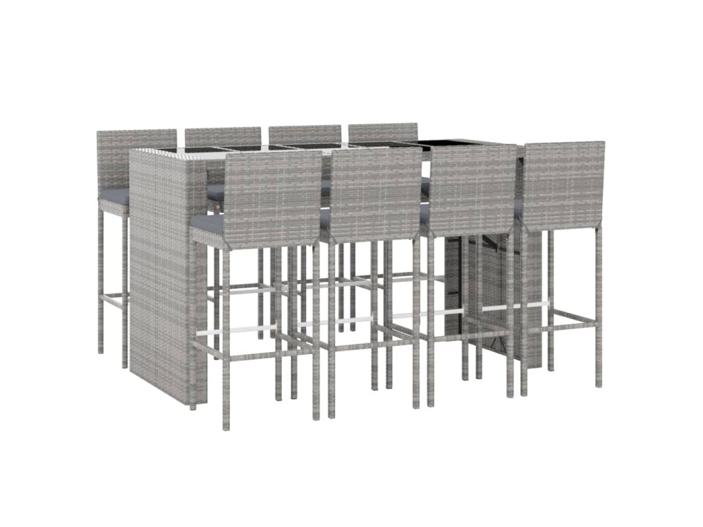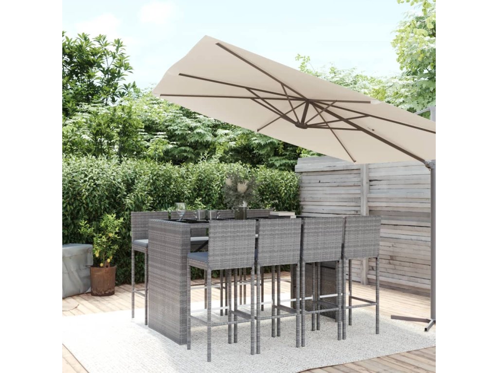 9dílný zahradní barový set s poduškami šedý polyratan 3187630
