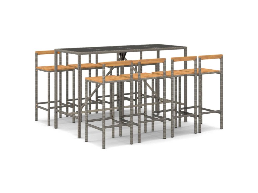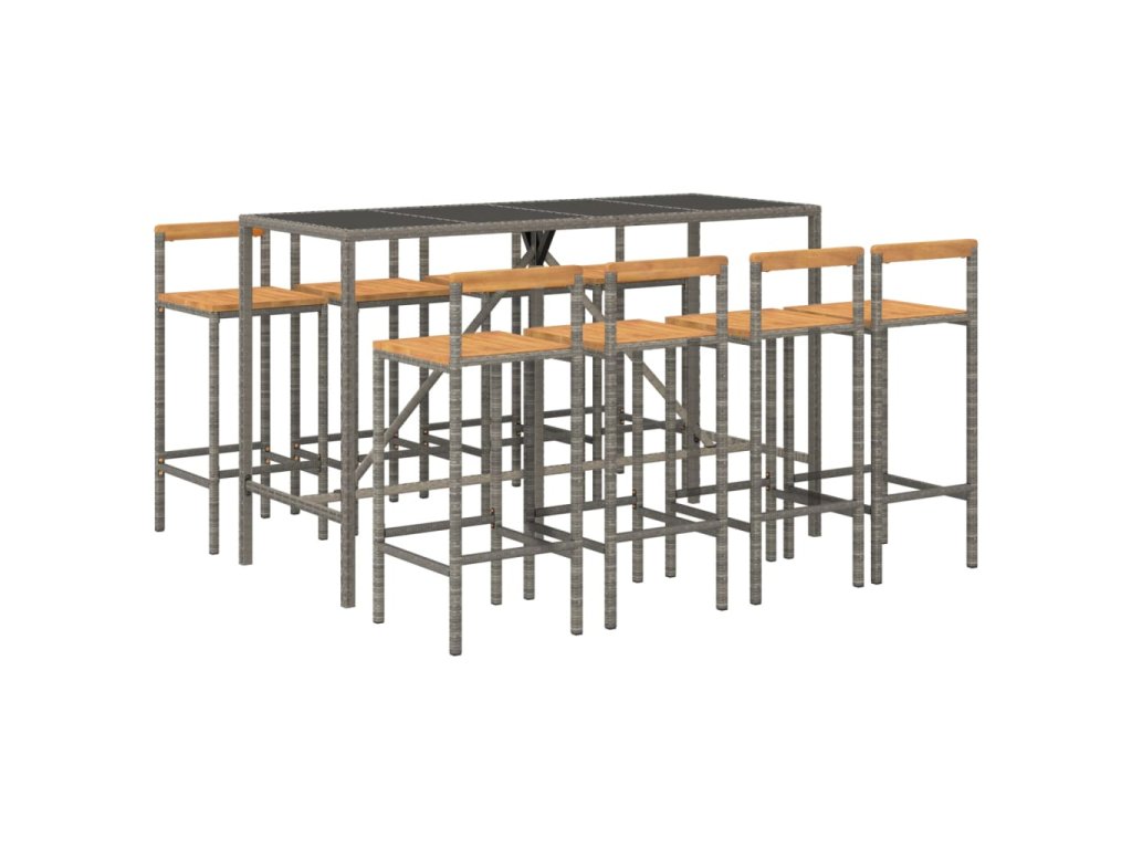 9dílný zahradní barový set šedý polyratan a masivní akácie 3187697