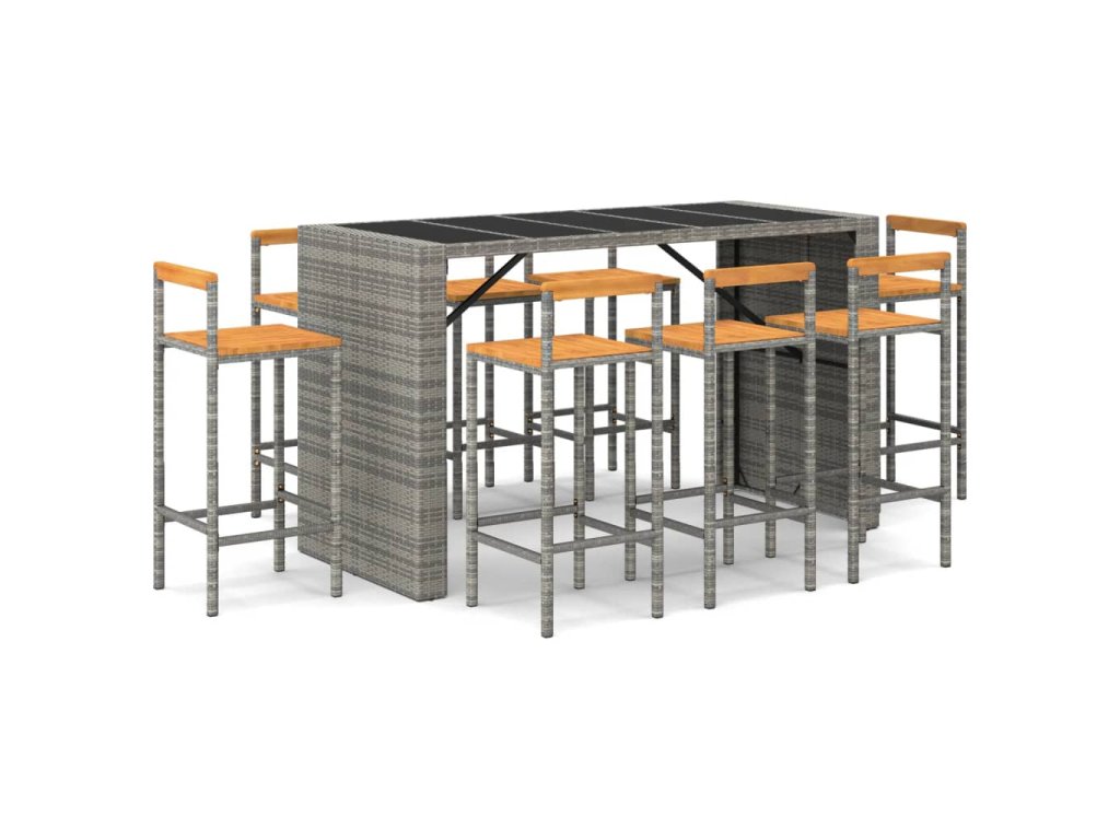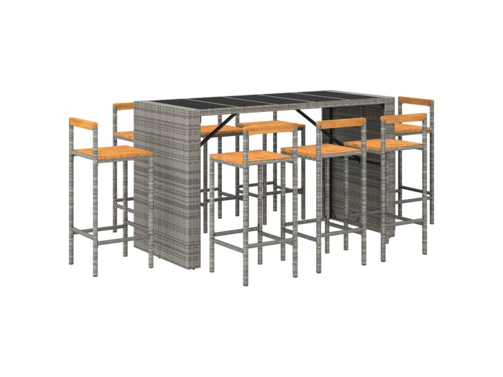 9dílný zahradní barový set šedý polyratan a masivní akácie 3187705