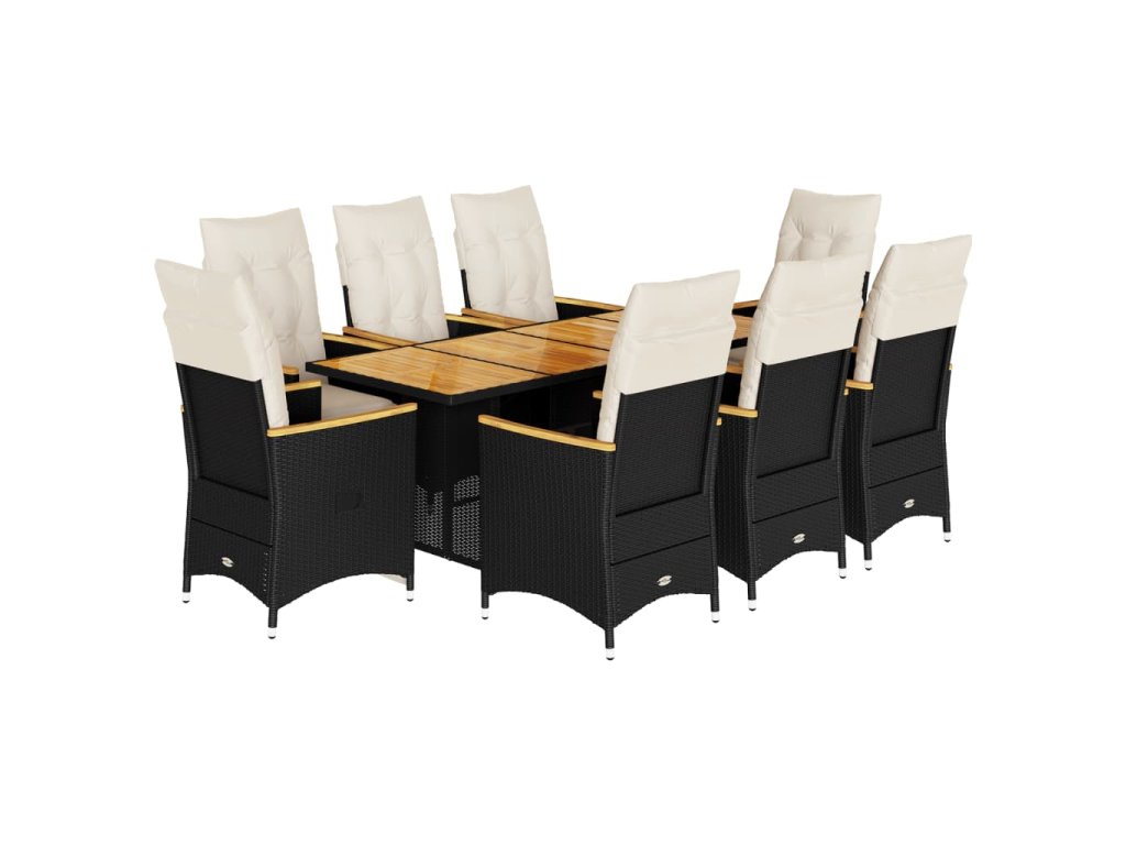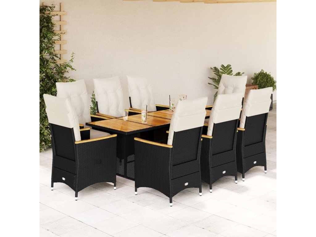 9dílný zahradní bistro set s poduškami černý polyratan 3276966
