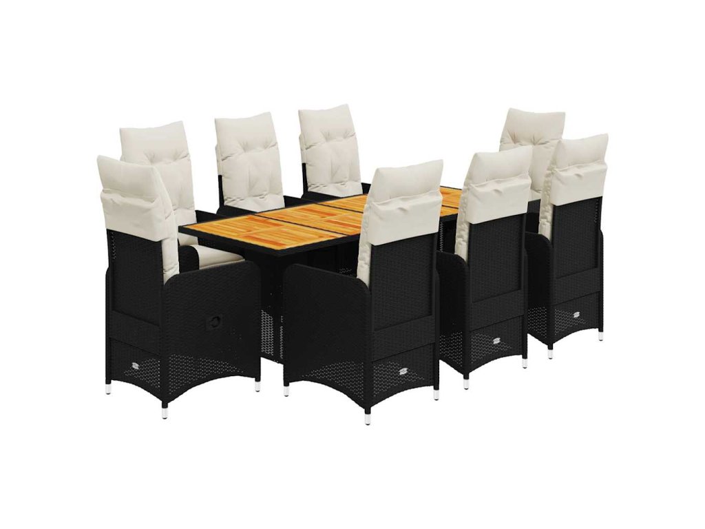 9dílný zahradní bistro set s poduškami černý polyratan 3276985