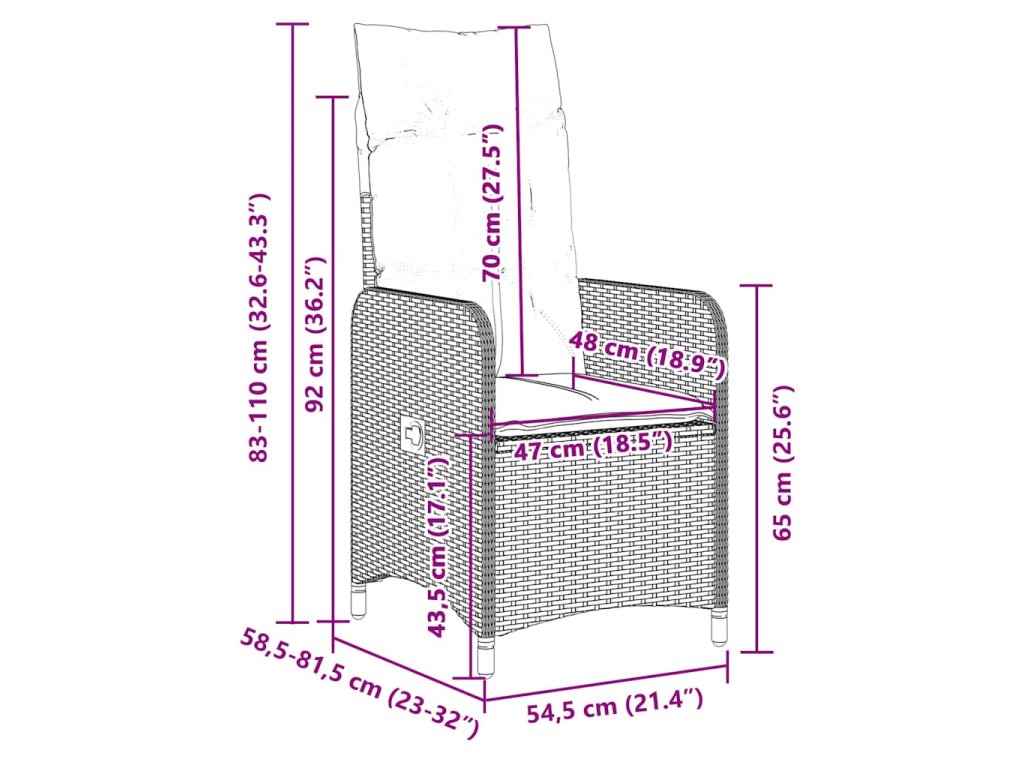 - Rozměry při poloze vsedě: 54,5 x 58,5 x 92 cm (Š x H x V)