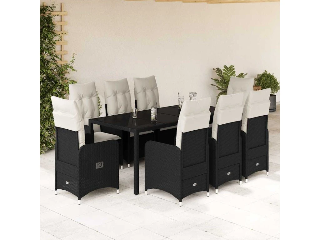 9dílný zahradní bistro set s poduškami černý polyratan 3276994