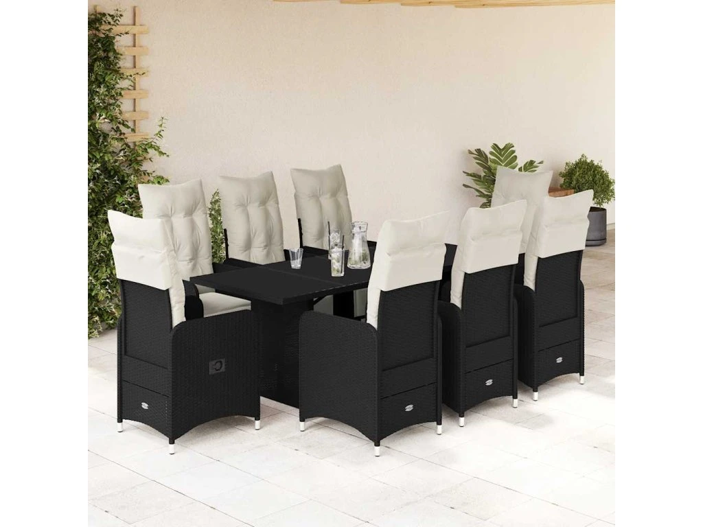 9dílný zahradní bistro set s poduškami černý polyratan 3277142