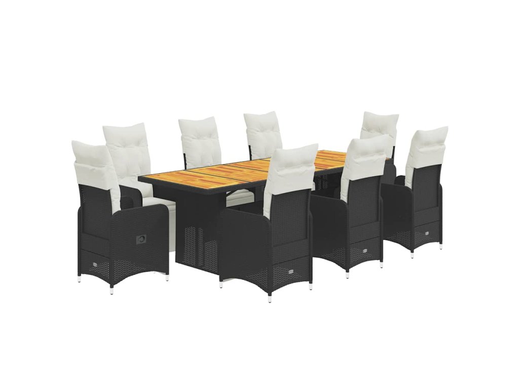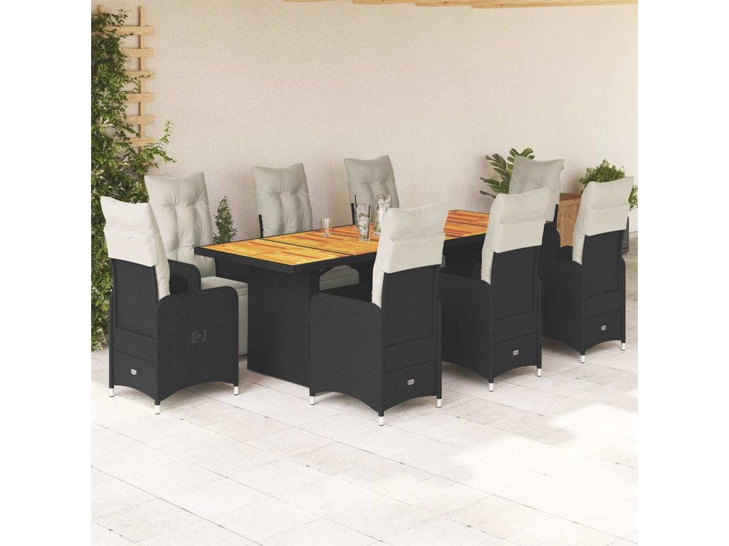 9dílný zahradní bistro set s poduškami černý polyratan 3277289