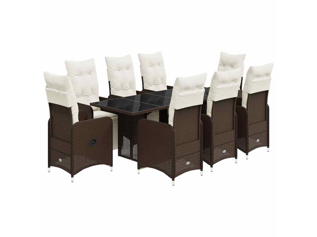 9dílný zahradní bistro set s poduškami hnědý polyratan 3277194
