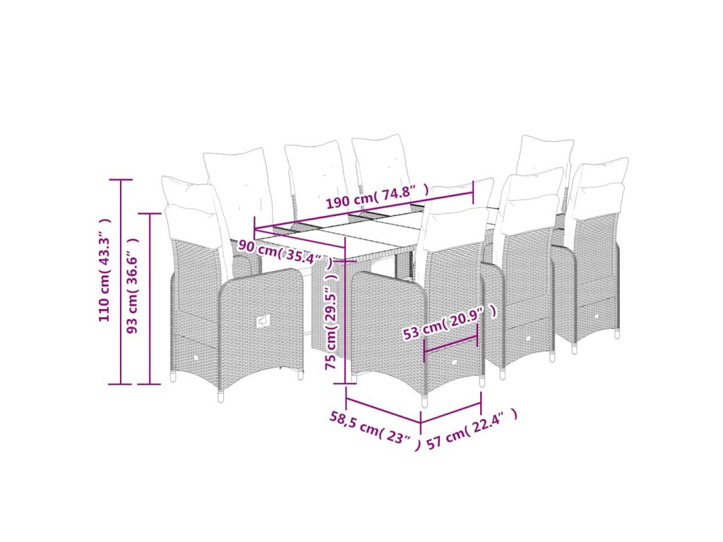 - Pohodlné sezení: Tento venkovní nábytek se silně polstrovanými poduškami a polštáři nabízí pohodlné sezení.