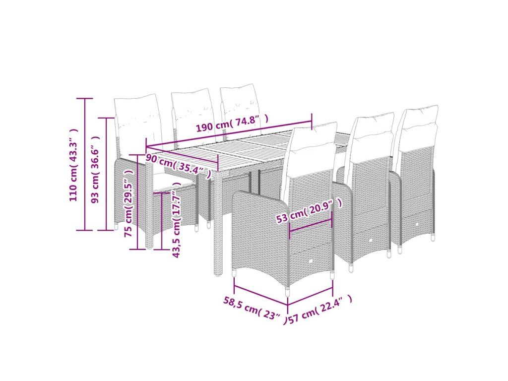 - Materiál: PE ratan, ocel, masivní akáciové dřevo s olejovou povrchovou úpravou