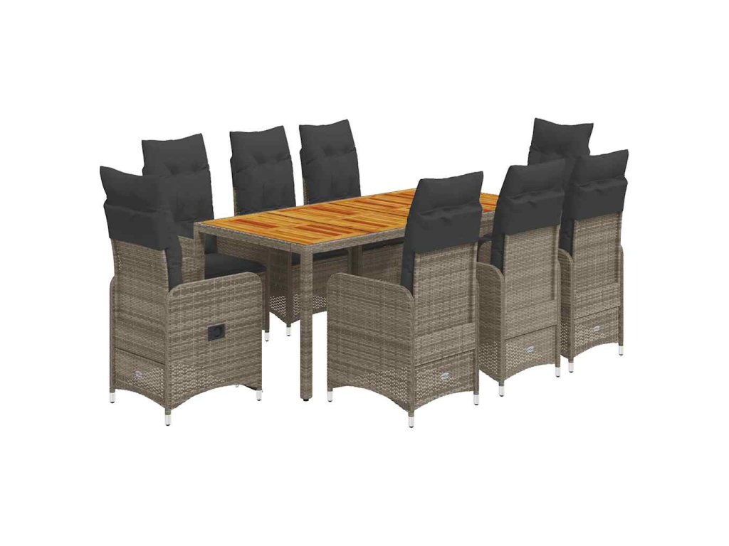 9dílný zahradní bistro set s poduškami šedý polyratan 3277027
