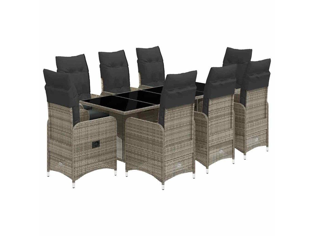 9dílný zahradní bistro set s poduškami šedý polyratan 3277041