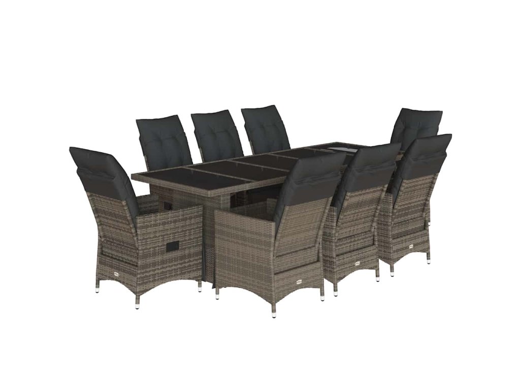 9dílný zahradní bistro set s poduškami šedý polyratan 3277261