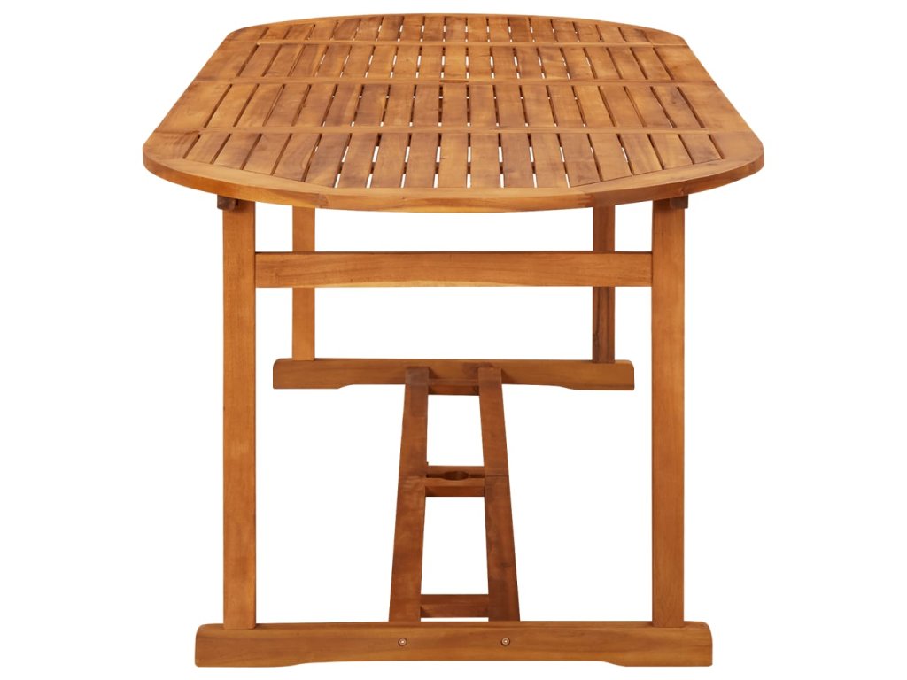 Venkovní jídelní set je vyrobený z masivní akácie, což je tropické tvrdé dřevo, které je odolné a výborně vzdoruje povětrnostním vlivům, takže vám vydrží sloužit po dlouhá léta. Olejovaný povrch se snadno čistí vlhkým hadříkem. Pokud terasové židle právě nepoužíváte, můžete je složit do kompaktní velikosti, aby vám zbytečně nepřekážely.