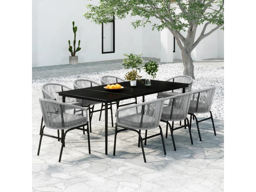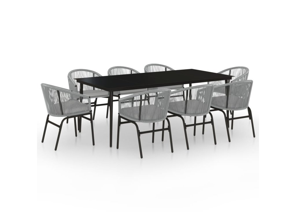 Zahradní jídelní set má práškově lakovaný ocelový rám, takže je robustní a stabilní a ideální pro venkovní použití. Hladká skleněná deska stolu se snadno čistí vlhkým hadříkem a skvěle vám poslouží k podávání jídla a pití nebo k vystavení různých dekorativních předmětů. Židle jsou vyrobené z PVC ratanu, jsou proto odolné a výborně vzdorují UV záření i špatnému počasí. Každá z nich je navíc opatřená odnímatelnou hustě polstrovanou poduškou, a zpříjemní vám tak váš odpočinek.