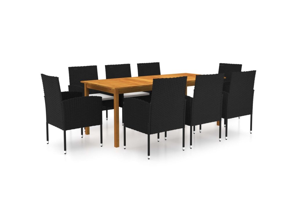 9dílný zahradní jídelní set černý 3067929