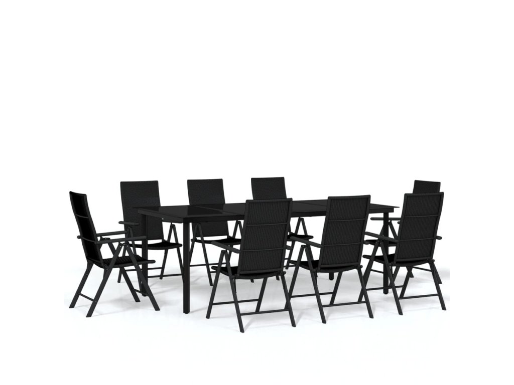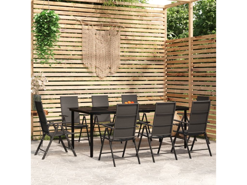 Zahradní jídelní stůl má práškově lakovaný ocelový rám, takže je robustní a stabilní a ideální pro venkovní použití. Hladká skleněná deska stolu se snadno čistí vlhkým hadříkem a skvěle vám poslouží k podávání jídla a pití nebo k vystavení různých dekorativních předmětů. Židle jsou vyrobené z PE ratanu, jsou proto lehké a voděodolné. Jejich opěradla lze navíc naklonit do 7 různých poloh, abyste si mohli vždy najít ten nejpohodlnější způsob sezení. Pokud židle zrovna nepoužíváte, můžete je složit, a ušetřit tak místo.