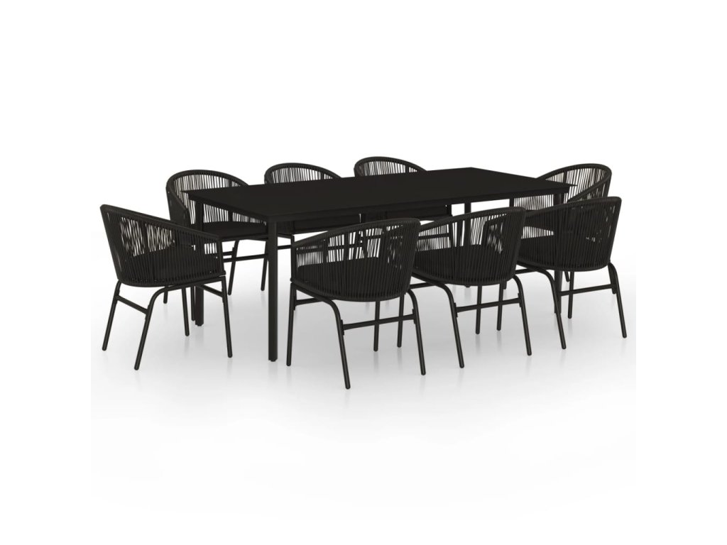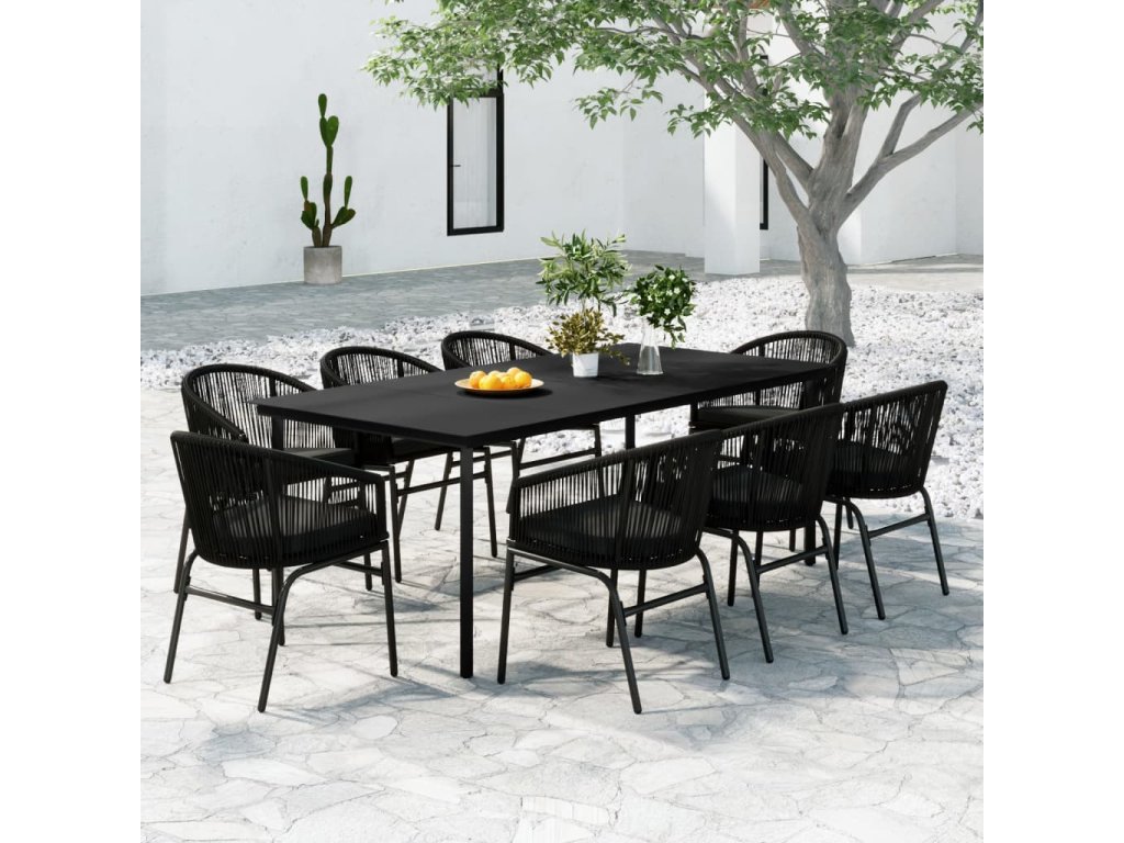 Zahradní jídelní set má práškově lakovaný ocelový rám, takže je robustní a stabilní a ideální pro venkovní použití. Hladká skleněná deska stolu se snadno čistí vlhkým hadříkem a skvěle vám poslouží k podávání jídla a pití nebo k vystavení různých dekorativních předmětů. Židle jsou vyrobené z PVC ratanu, jsou proto odolné a výborně vzdorují UV záření i špatnému počasí. Každá z nich je navíc opatřená odnímatelnou hustě polstrovanou poduškou, a zpříjemní vám tak váš odpočinek.