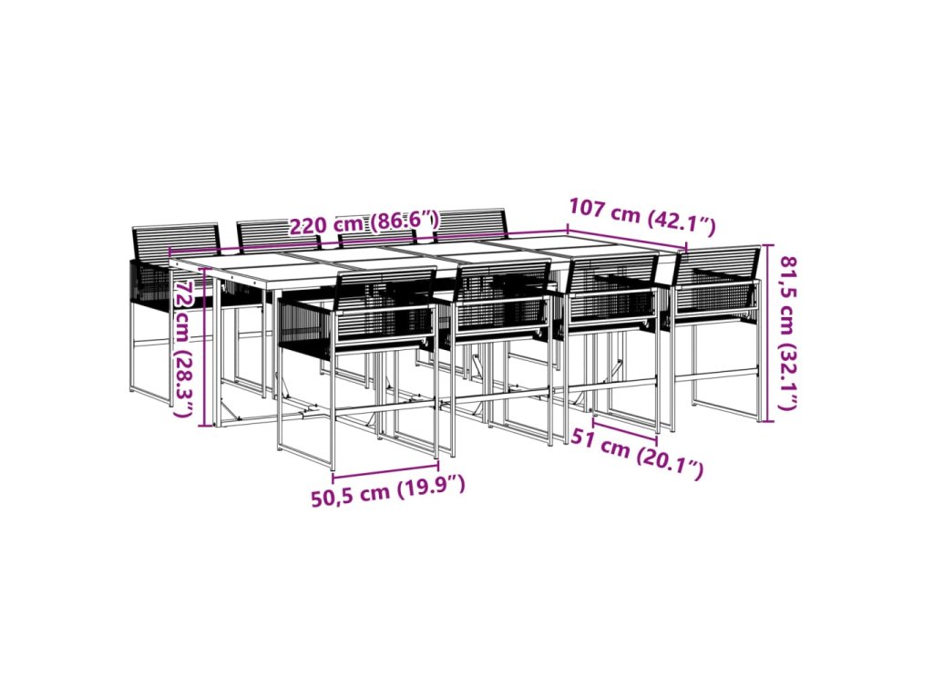 Tento zahradní jídelní set je skvělou volbou pro stolování pod širým nebem nebo jen tak pro odpočívání na zahradě, dvorku či terase.
