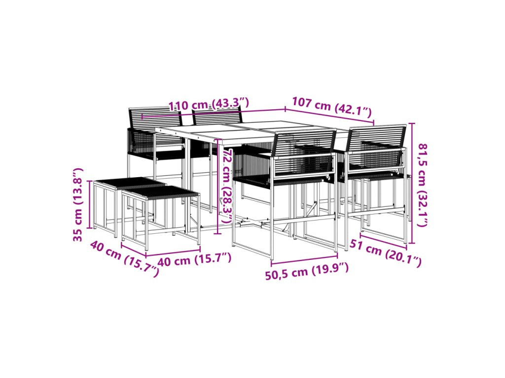 Tento zahradní jídelní set je skvělou volbou pro stolování pod širým nebem nebo jen tak pro odpočívání na zahradě, dvorku či terase.