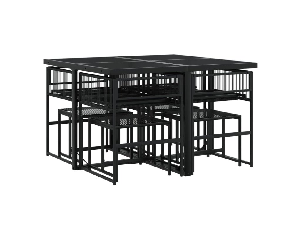 9dílný zahradní jídelní set černý polyratan 3295053