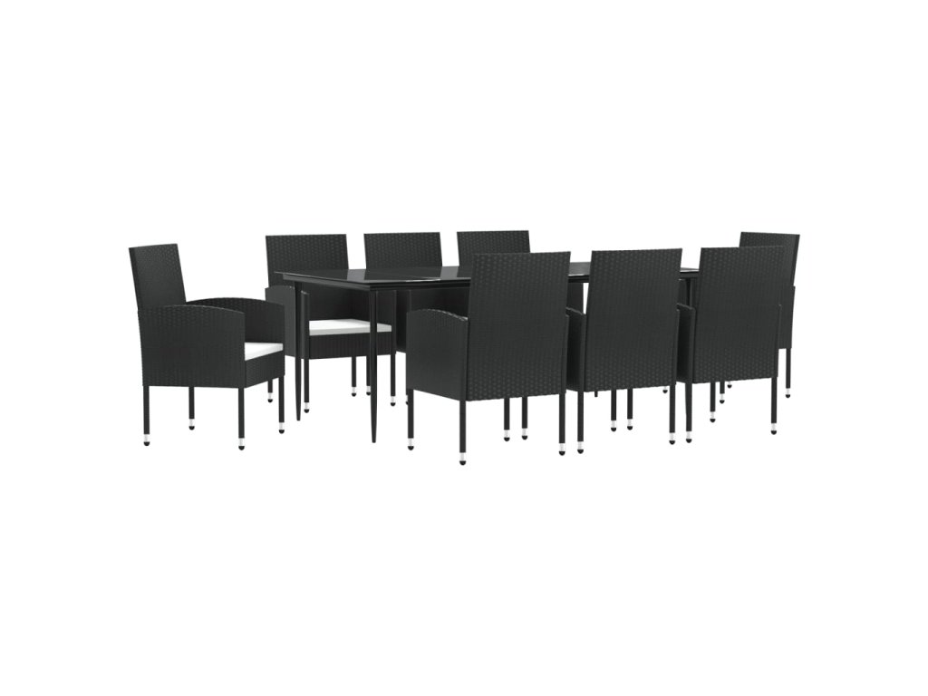 9dílný zahradní jídelní set černý polyratan a ocel 3203311