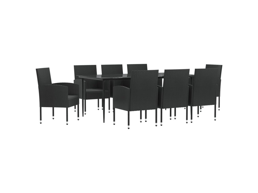 9dílný zahradní jídelní set černý polyratan a ocel 3203343