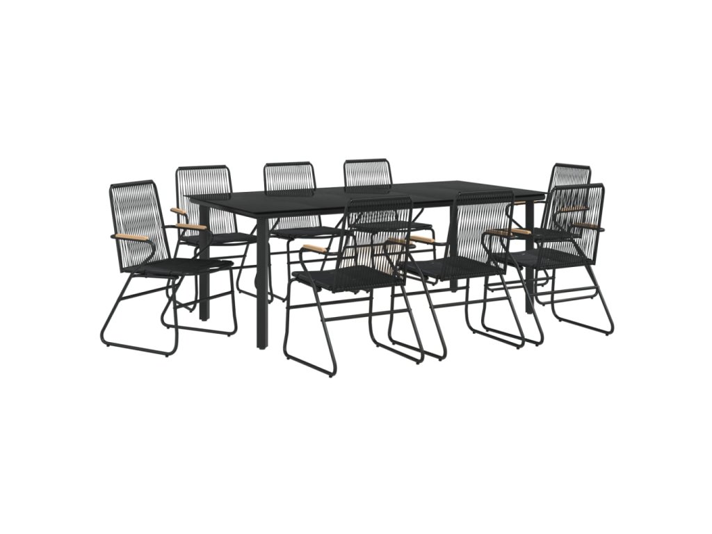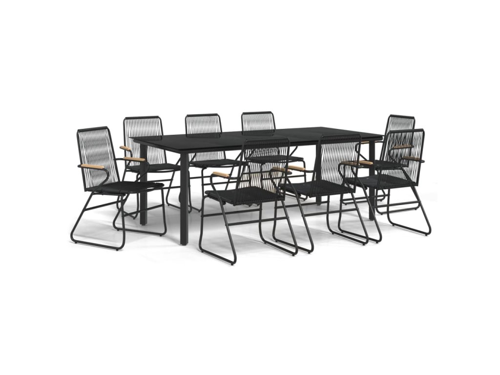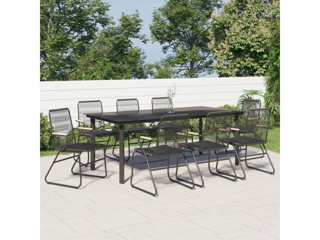 9dílný zahradní jídelní set černý PVC ratan 3099214