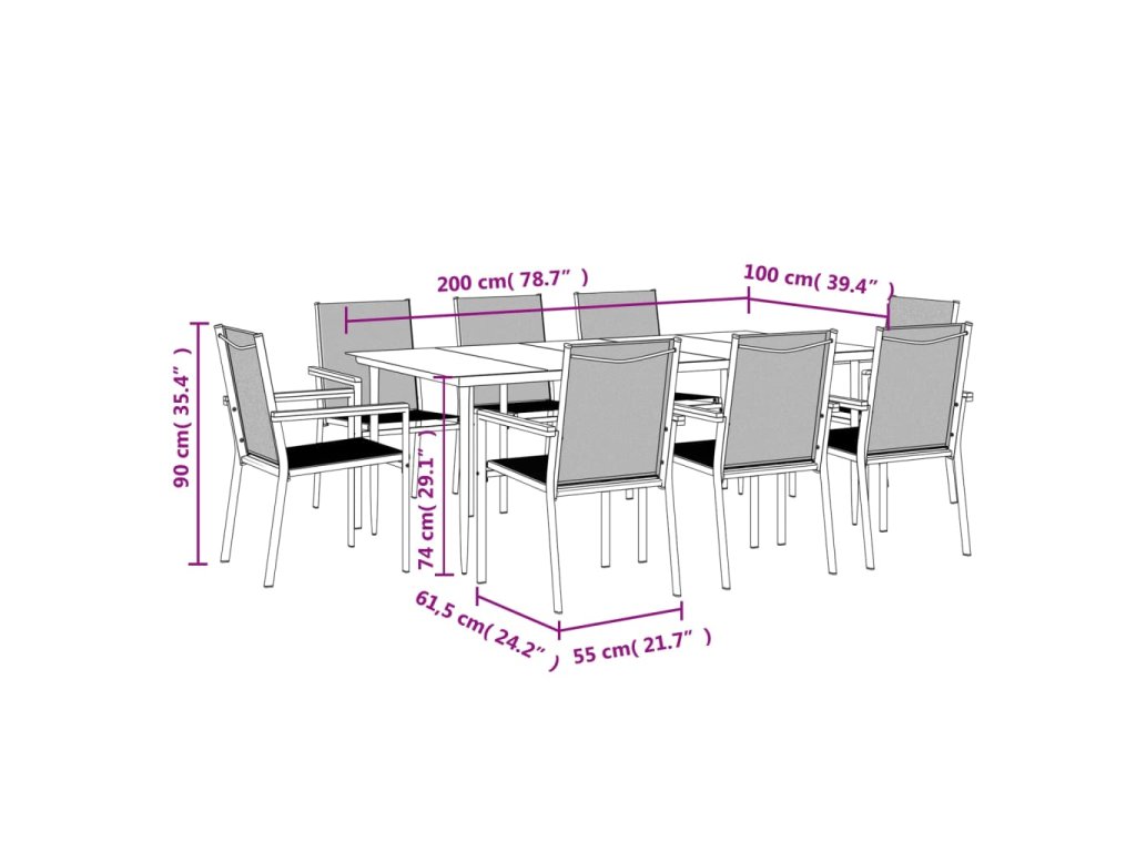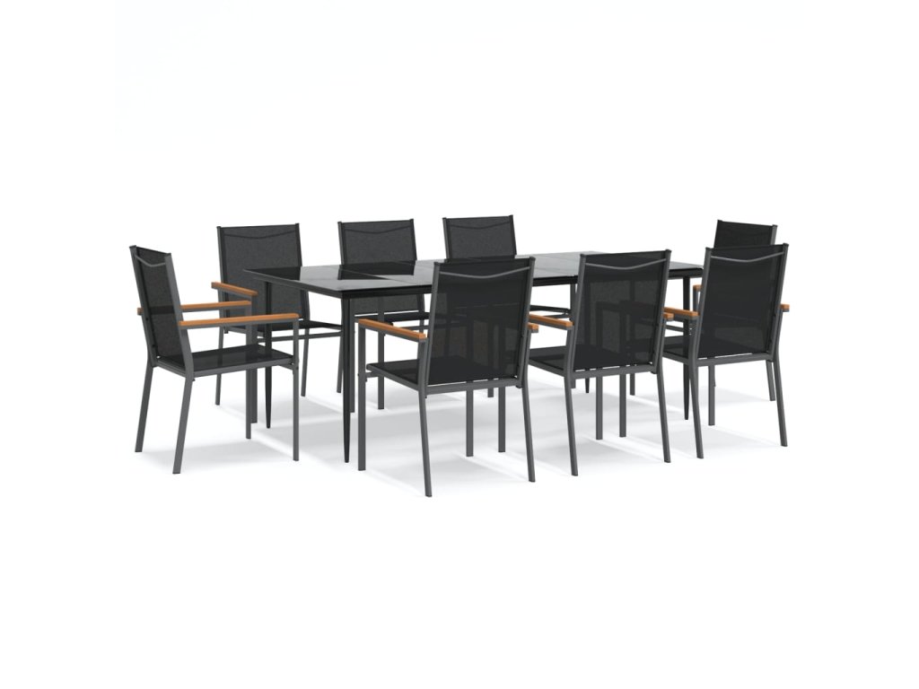 9dílný zahradní jídelní set černý textilen a ocel 3187040