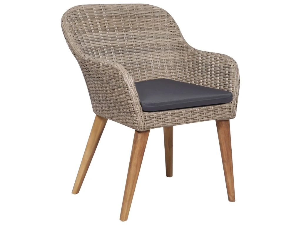 Jídelní stůl je zhotovený z masivního akáciového dřeva s olejovaným povrchem, takže je stabilní, odolný a nenáročný na údržbu. Jídelní židle mají rám z práškově lakované oceli, opletený PE ratanem, který výborně vzdoruje klimatickým vlivům. Dlouho vám proto vydrží a snadno je očistíte. Ergonomický tvar spolu s hustě polstrovanými poduškami vám při sezení zaručí maximální pohodlí. Polyesterové potahy podušek nevyžadují téměř žádnou údržbu a dají se jednoduše stáhnout a oprat.