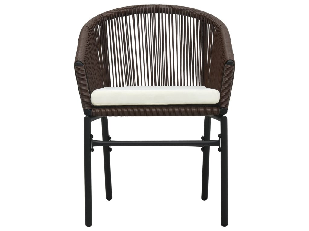 Zahradní jídelní set má práškově lakovaný ocelový rám, takže je robustní a stabilní a ideální pro venkovní použití. Hladká skleněná deska stolu se snadno čistí vlhkým hadříkem a skvěle vám poslouží k podávání jídla a pití nebo k vystavení různých dekorativních předmětů. Židle jsou vyrobené z PVC ratanu, jsou proto odolné a výborně vzdorují UV záření i špatnému počasí. Každá z nich je navíc opatřená odnímatelnou hustě polstrovanou poduškou, a zpříjemní vám tak váš odpočinek.