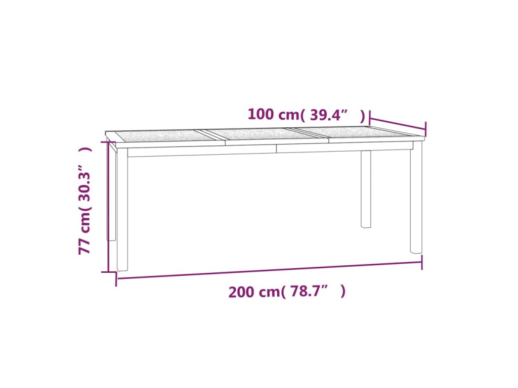 - Rozměry: 200 x 100 x 77 cm (D x Š x V)