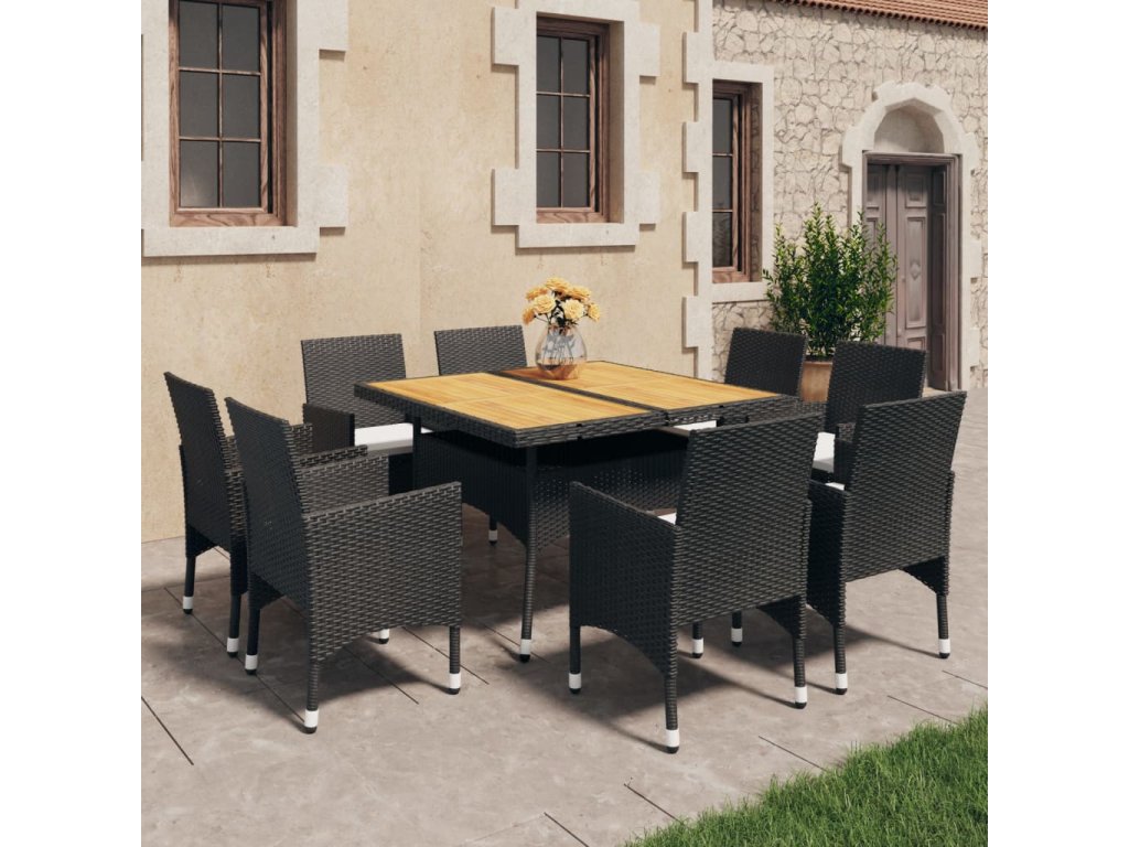 9dílný zahradní jídelní set polyratan a akáciové dřevo černý 3058342