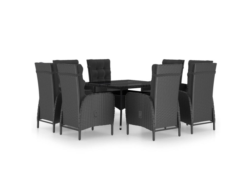 9dílný zahradní jídelní set polyratan a sklo černý 3058532