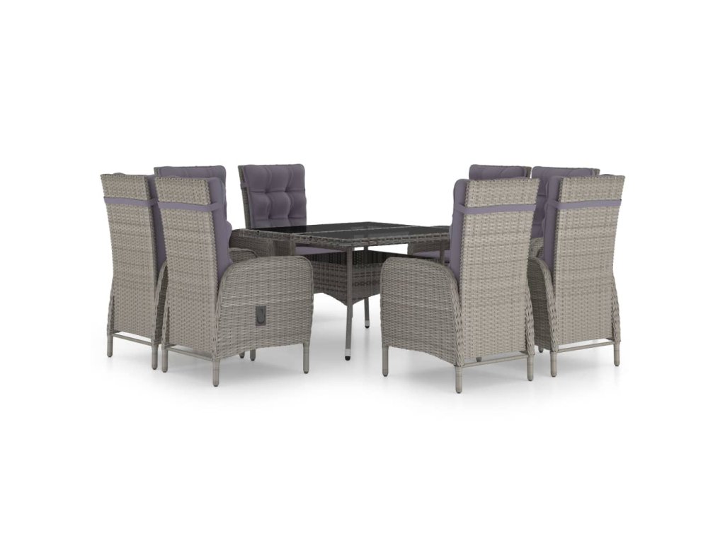 9dílný zahradní jídelní set polyratan a sklo šedý 3058530