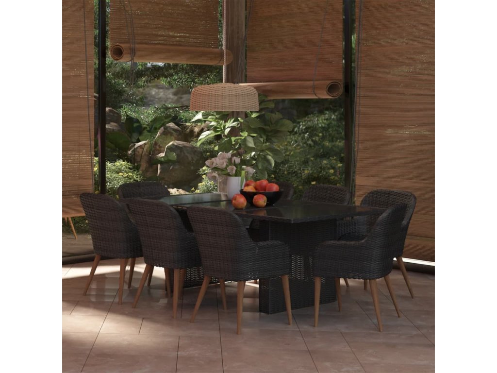 Sada zahradního nábytku disponuje pevným ocelovým rámem s práškovým nástřikem, je tudíž velmi stabilní a odolná. Voděodolný PE ratan, ze kterého je jídelní set vyrobený, se snadno čistí, je pevný a vhodný pro každodenní venkovní použití. Skleněnou stolní desku jednoduše očistíte navlhčeným hadříkem. Nedílnou součástí sady jsou také obzvláště pohodlné podušky na sedáky. Potahy těchto podušek jsou nenáročné na údržbu a můžete je snadno stáhnout a vyprat.