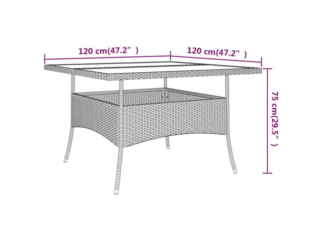 - Rozměry stolu: 120 x 120 x 75 cm (Š x H x V)