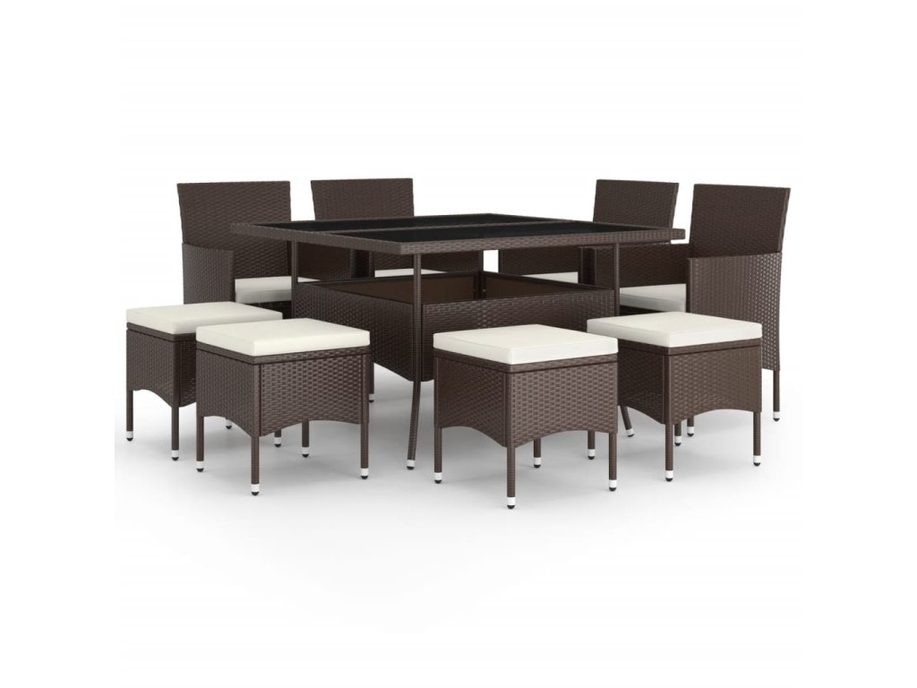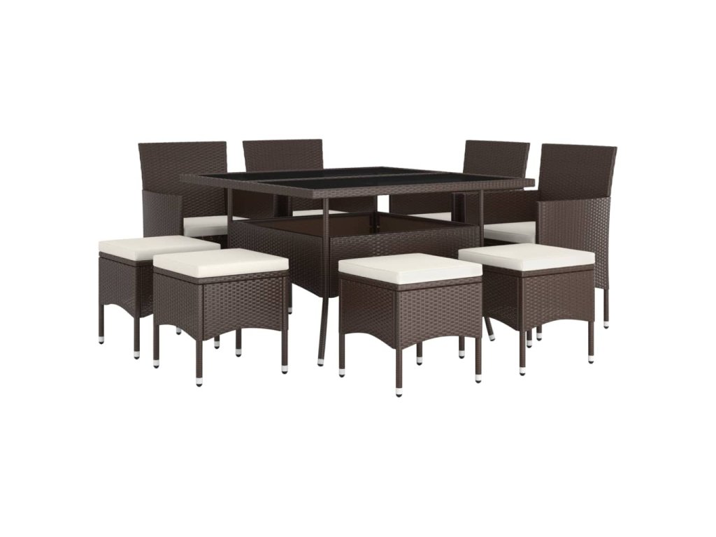 9dílný zahradní jídelní set polyratan hnědý 3058351