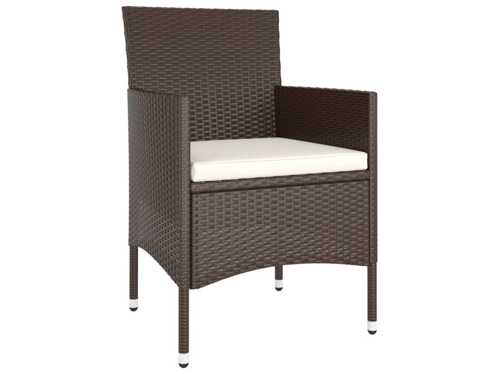 Stůl a židle mají práškově lakovaný ocelový rám opletený PE ratanem, který skvěle odolává povětrnostním vlivům i UV záření, jsou tedy stabilní a mají dlouhou životnost. Židle jsou navrženy se zaobleným opěradlem a područkami pro maximální pohodlí. Součástí balení jsou také podušky, které vám poskytnou ještě větší komfort. Potah je navíc vybaven zipem, takže se dá jednoduše sejmout a vyprat. Stolní deska je zhotovená ze zesíleného tvrzeného skla zasazeného v pevném rámu, snadno se tedy čistí a udržuje. Čtyři podnožky zároveň slouží jako dodatečná místa k sezení. Nábytek se vyznačuje lehkou konstrukcí, všechny kusy lze tudíž bez námahy přemisťovat, přestavovat a přepravovat.