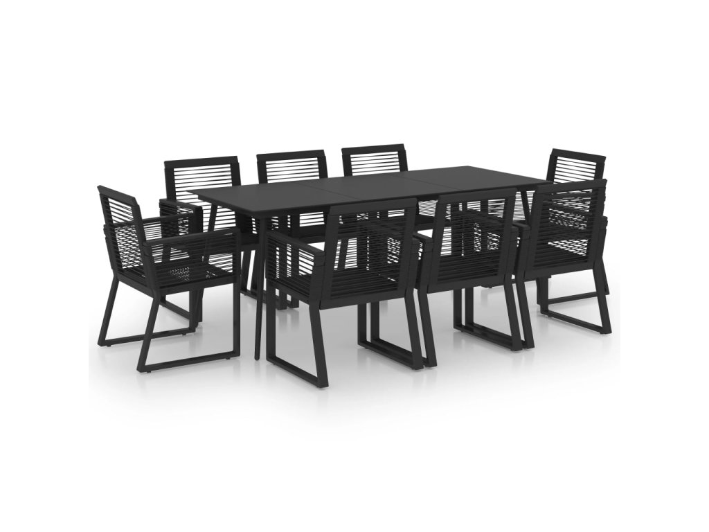 9dílný zahradní jídelní set PVC ratan černý 3060218