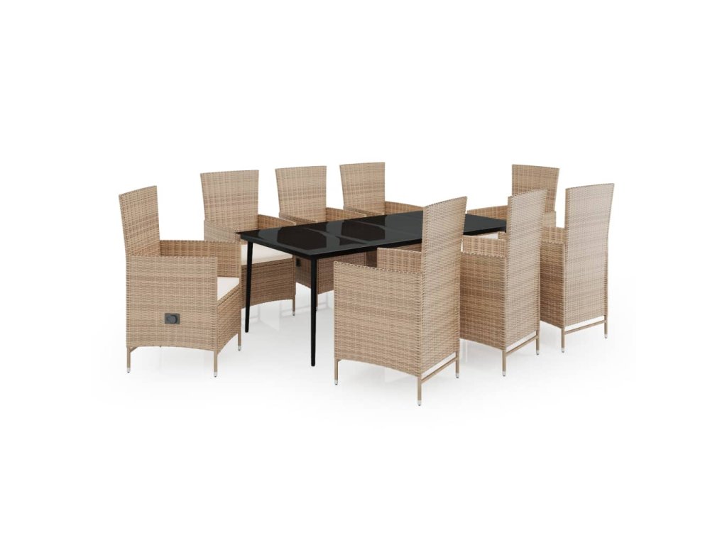 9dílný zahradní jídelní set s poduškami béžový 3099460